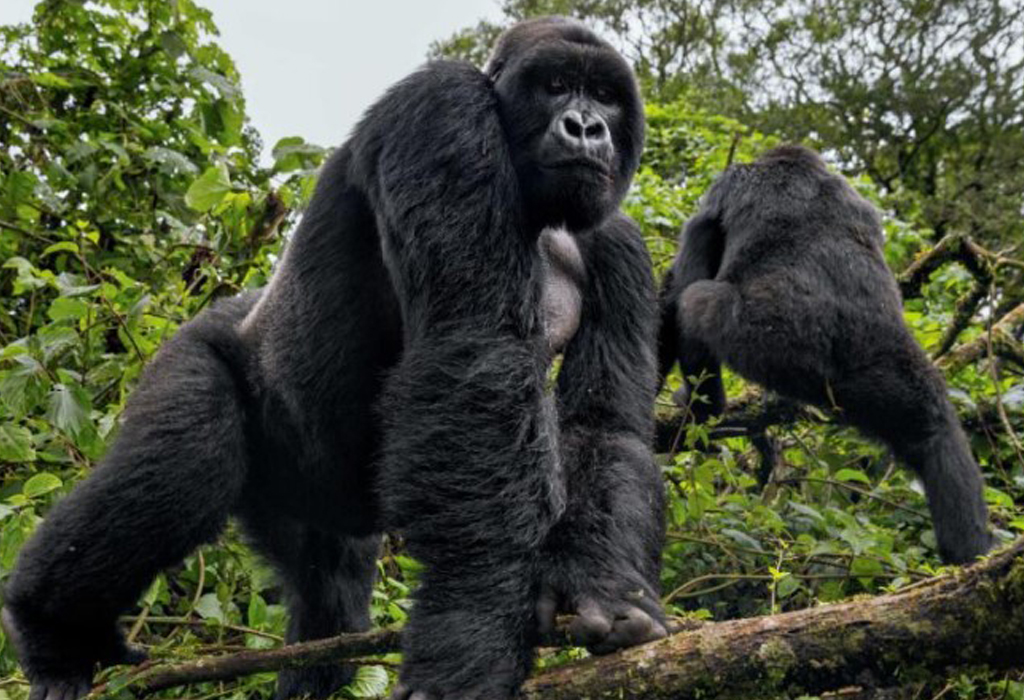 The mighty mountain gorilla is one of the great apes—alongside chimpanzees, bonobos, orangutans, and humans. They live only in Uganda, Rwanda, and the DRC, and each has a unique nose print like a human fingerprint. These gentle giants live in family groups led by a dominant silverback male. Trekking through the misty jungles of Bwindi Impenetrable National Park gives you a chance to witness their tender and powerful nature up close.